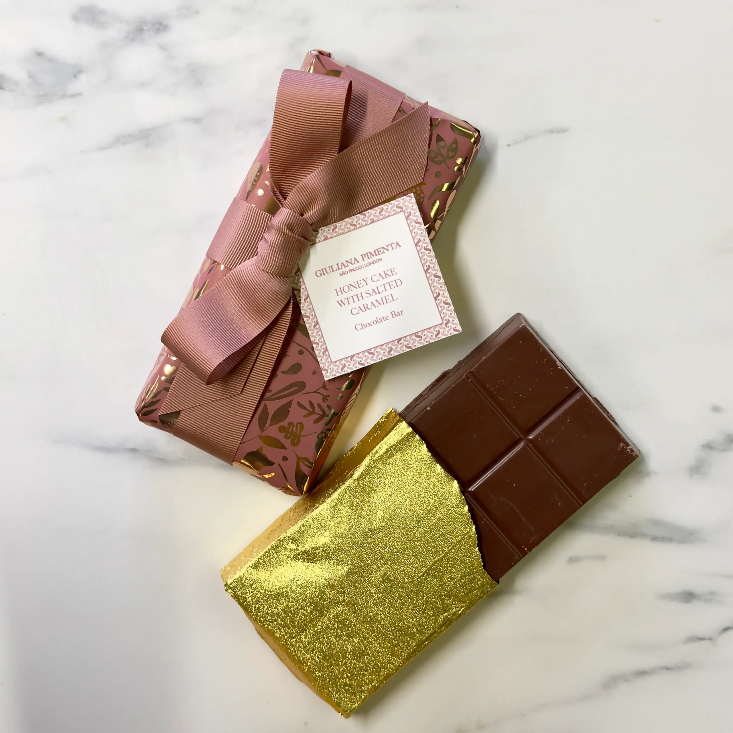 A festive favourite, reimagined. This bar features a soft, aromatic honey cake infused with warm spices like cinnamon and cloves, paired with a silky, luscious salted caramel, all enrobed in premium Belgian milk chocolate.